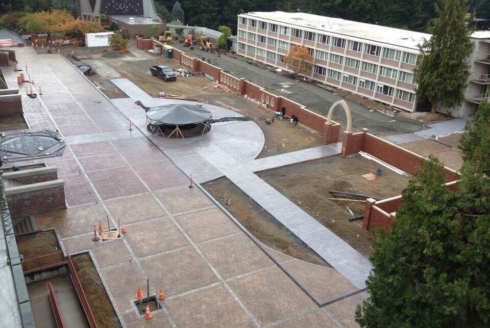 Saint Martin Courtyard, Lacey. Exemplary work recognized for excellence in concrete construction project.